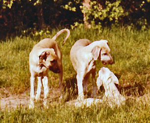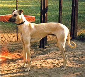 Stammhunde Meine ersten fünf Sloughis habe ich aus Marokko importiert, auf diesen Hunden ist meine Zucht aufgebaut. In der Verbandszeitung des VDH "Unser Rassehund" hatte ich über den Sloughi gelesen. Mich faszinierte diese Rasse und ich sprach unseren damaligen marokkanischen Bekannten, der zu diesem Zeitpunkt in Deutschland war, darauf an. Er erklärte und erzählte mir sehr viel über diese Rasse. Im April 1973 fand in Rabat eine CACIB Ausstellung statt, meine damalige Sportkameradin Hannelore und ich meldeten spontan unsere Collies für die Ausstellung. Gleichzeitig nahm ich mir vor in Marokko nach einem Sloughi zu suchen. Durch die Vermittlung unseres marokkanischen Bekannten erwarb ich meinen ersten Rüden „Vero del Ksiri” (29.07.1972) Als wir von der Ausstellung ins Hotel zurück kamen lag beim Empfang ein grosser Blumenstrauß für uns bereit, mit der Einladung als Ehrengäste am Festabend anlässlich der CACIB Ausstellung teilzunehmen, da wir die ersten deutschen Aussteller in Rabat waren. An diesem Abend lernten wir Herrn Pascon kennen. Ich erzählte ihm voller Stolz von meinem Erfolg, einen Sloughi erworben zu haben. Im weiteren Gespräch des Abends versprach Herr Pascon mir, sich um eine passende Hündin für Vero zu kümmern. Ein halbes Jahr später flog ich wieder nach Marokko und erwarb die Hündin Vassya d'ouled Dlim (12.09.1972). Bei diesem Aufenthalt machte mir Herr Pascon den Vorschlag, bei ihm ein Pärchen Sloughis aus seinem nächsten Wurf zu erwerben. Im Mai 1974 flog ich wieder nach Rabat um mir den Wurf anzusehen. Ich entschied mich für einen Rüden und zwei Hündinnen. Xar, Xety und Xoute des Oudaia (31.01.1974), die Mutter des Wurfes ist Vive des Oudaia RIM 172 Seit 1974 gilt Marokko als Standard führendes Land für Sloughis, vorher war es Frankreich. Mit den Welpen und dem marokkanischen Standard, einschließlich der Kopfstudie für Sloughis, flog ich nach Deutschland zurück. Somit besaß ich im Mai 1974 fünf Importsloughis, alle mit Ahnentafeln aus Marokko. Im Oktober 1974 fiel in meinem Zwinger "Ahrar al Maghrib" der erste Wurf. In späteren Jahren übernahm ich noch folgende Sloughis: 1980 die Hündinnen Hadaj's Bahiret ( E-Wurf) und Hadaj's Beja (F-Wurf) aus Dänemark 1985 den Rüden Nabuco Exodus aus Polen – Vater E-, G und H-Wurf 1988 die Hündin Ikiburi of Mumtaz-I-Javanadmi aus den Niederlanden – Mutter G-Wurf 1993 die Hündin Chebba el Maschrak - Mutter H- I- und J-Wurf 1994 den Rüden Ashmun al Afric – Vater I-Wurf ![]() Ashmun al Afric |